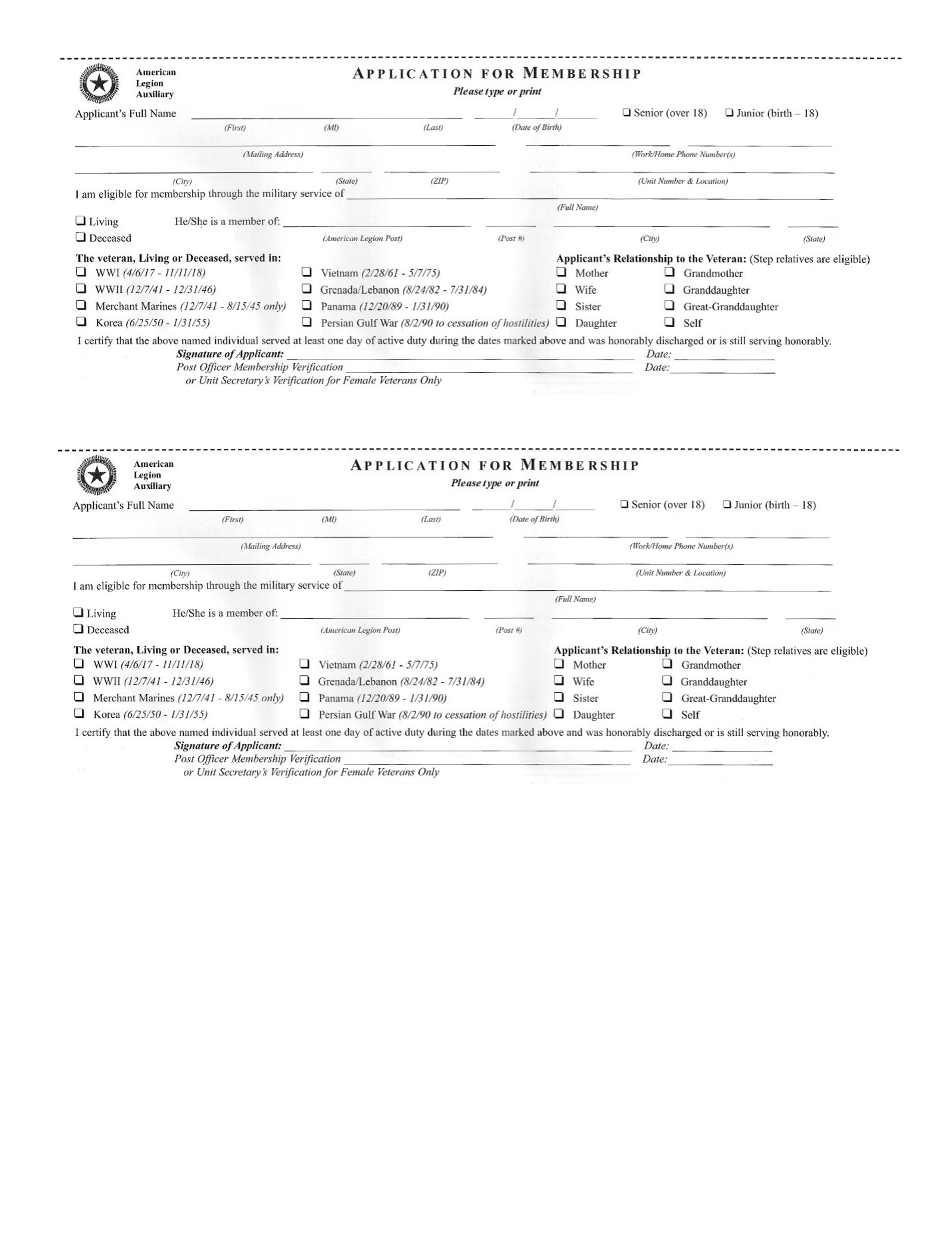SONS OF THE AMERICAN LEGION (SAL) APPLICATION